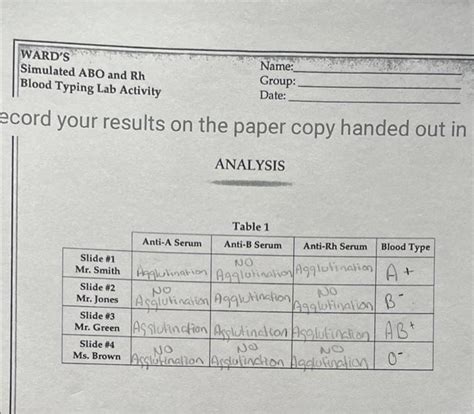 Ward39s Simulated Abo And Rh Blood Typing Lab Activity Assessment Answers